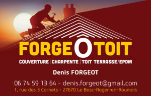 Charpente – Couverture Forge ô Toit Spécialité Toiture en ardoises, tuiles, zinc.Charpente.Toit, terrasse (E P D M).Ramonage.Bardage (bois, PVC). Ouverture Toute la semaine de