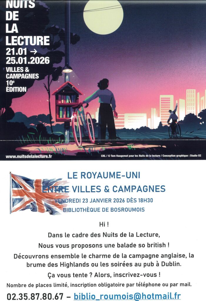 Comme chaque année, la bibliothèque participe aux Nuits de la Lecture qui sont programmées du 21 au 25 janvier 2026.